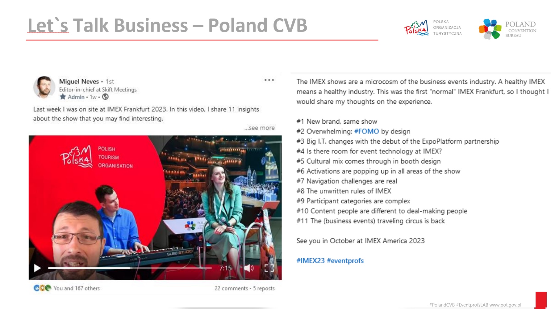 Social Media Story - Case Study of Poland Convention Bureau A case study was presented showcasing effective social media strategies through the example of the national convention bureau. The discussion covered campaigns that captured attention and engagement, illustrating practical aspects of social media activities and their impact on destination promotion. The rationale behind specific actions was explained, their effectiveness evaluated, and the most successful strategies highlighted.
