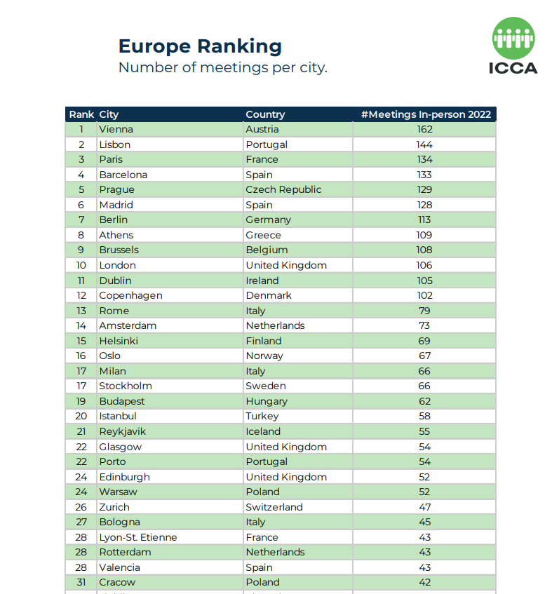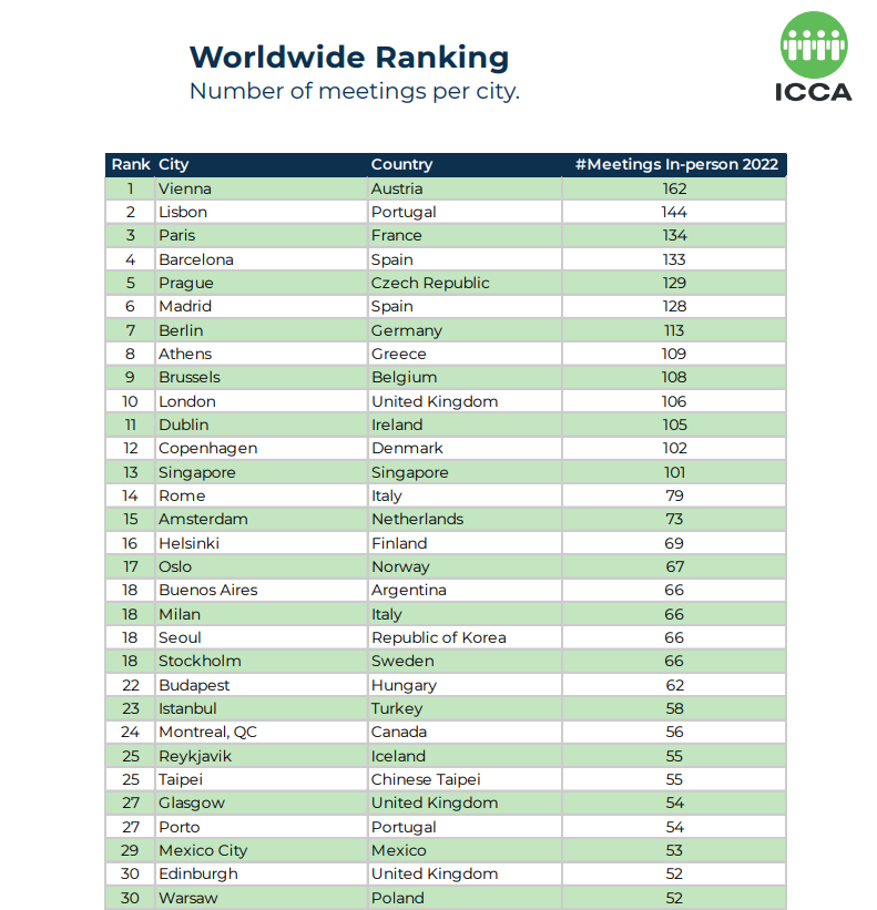 At the end of 2022, ICCA made the proactive decision to revert to normal rankings again based on the observation that approximately 85% of all meetings were held in-person. Of course, some countries and territories continued to operate under COVID-19 restrictions.