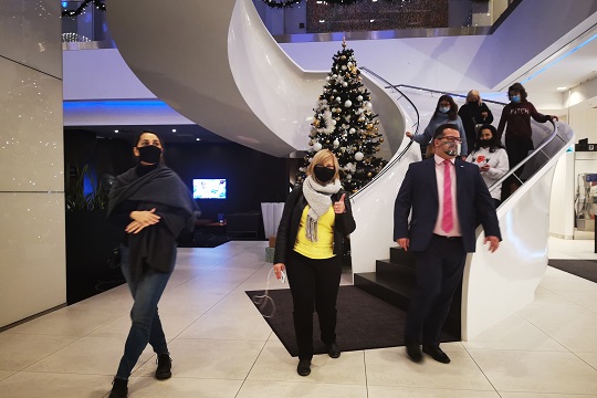 Due to the nationwide restrictions, the programme of the stay and its implementation was scheduled in such way as to ensure compliance with top hygienic safety requirements. The guests were travelling on a suitably-sized bus disinfected by ozone treatment, following the capacity limit of 25%. Hotel meals were served directly in guest rooms. The trip participants were moving around in small groups, wearing face masks and using hand disinfectants.