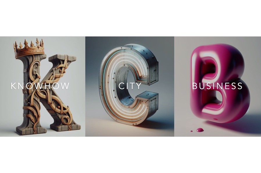 Krakow Convention Bureau will operate within the existing visual identity of the city, incorporating typographic and compositional elements. In the illustrative layer, KCB will subtly reference its name and claim using three letter symbols "K," "C," and "B," corresponding respectively to the areas of Know-How, City, and Business. This set of symbols will evolve and adapt to current communication needs.