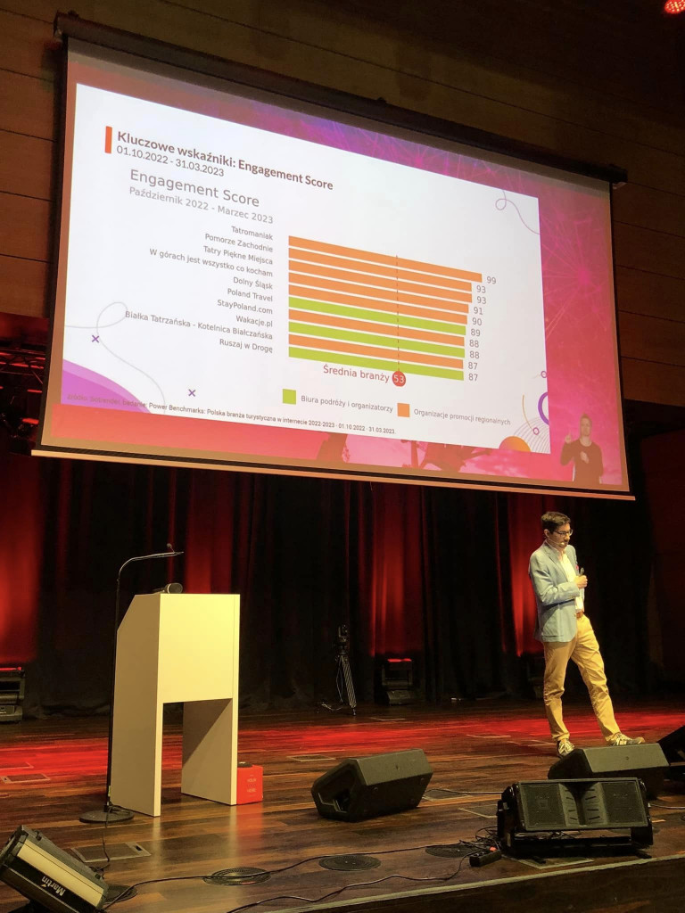 The first presentation at this year's conference was delivered by Jan Zając, the founder and CEO of Sotrender. During his speech, he presented the key findings of the "Polish Tourism Industry on the Internet 2022-2023" research. The analysis focused on social media activity conducted by 200 tourism brands, which included 50,000 posts, 520,000 comments, and 5.5 million interactions of various types. The rankings were dominated by companies such as Itaka and Wakacje.pl, as well as the Tatromaniak website and regions such as Western Pomerania, Krakow with Małopolska, and Lower Silesia.