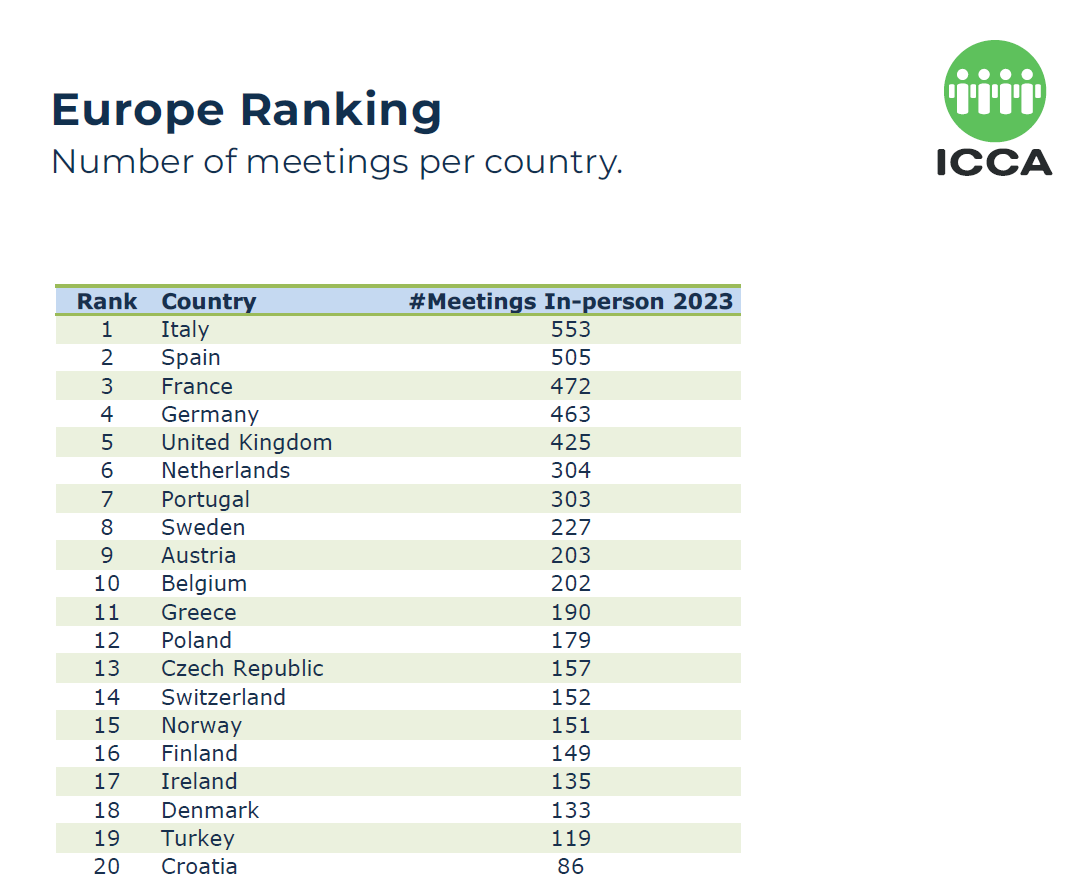 Top 20 Countries in Europe for In-Person Meetings in 2023