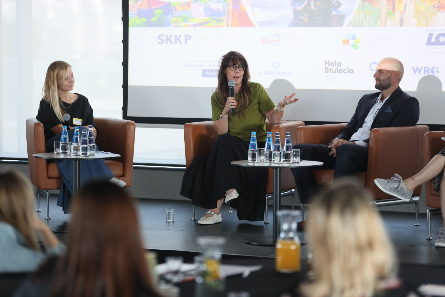 The discussion addressed practical solutions for implementing ESG policies in event organization, environmental impact, and challenges related to social responsibility in the meetings industry. Anna Peters shared her story about traveling by train from London to Wrocław.