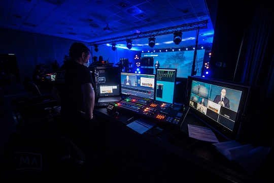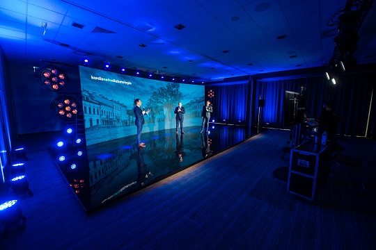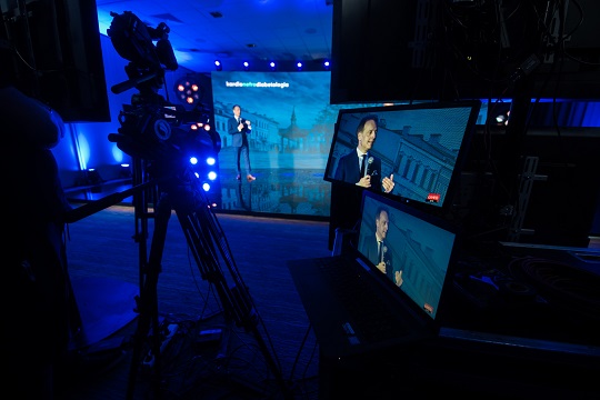 Our online broadcast production studio, regardless of whether it is online broadcast or offline streaming, will meet all requirements. It is equipped with professional equipment that can be configured for online events, those with a basic budget, but also for demanding customers where unique scenography, cameras and TV-standard lighting are essential. We are ready to implement simple broadcasts to Facebook or other social media and channels such as YouTube or Vimeo, but also to dedicated streaming solutions for an open or limited group of people. We have dedicated professional software that allows you to connect with many speakers at the same time, which can be configured in real time so that it is as stable and of the best quality as possible. The online broadcast studio is equipped with LED screens and professional stage and film lighting, In conjunction with an experienced and always committed team as well as with the best Polish platform for online events, wydarzeniaonline.pl studio offers great and comprehensive opportunities to organize each online event.