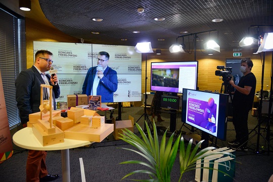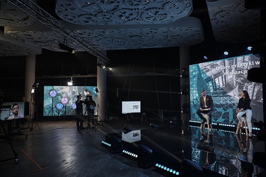 Selected rooms of the Lublin Conference Centre are adapted to the implementation of online events - they are fully equipped with the highest quality AV equipment and stage lighting, which, combined with the experience of the technical crew, meet the requirements related to the preparation of even the most complex projects. The current Main Hall has turned into our largest Studio (area: 344 sq. m.) – complex events in the type of a TV show are organized here. We have the ability to simultaneously broadcast many events and combine production from each studio. For online projects, we focused on QUALITY, which we guarantee thanks to the hardware, software and a stable internet link. An experienced team always supports the organizers, encouraging them to abandon the beaten paths and jointly work out completely new forms of events. The sales department performs an advisory function for the organizers, and the employees have become guides in the world of online events.