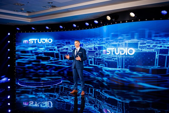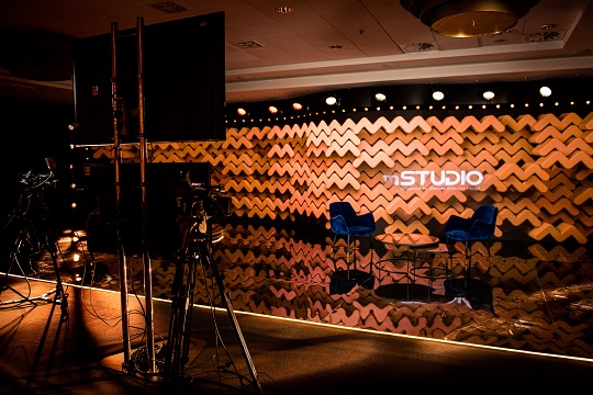 mStudio powered by Warsaw Marriott Hotel is a prestigious space with full facilities and experienced professional service, which includes producers, operators, vision and streaming implementers as well as a director who, in cooperation with a professional graphic studio, will take care of the unique visual setting of each project. mStudio powered by Warsaw Marriott Hotel is nearly 200 square meters equipped with the latest technology enabling the implementation of television recordings, videoconferences, online events, the possibility of expanding the space, also hybrid events. In addition, the Studio's design includes additional hotel services: the possibility of recording an interview or organizing an on-line event on the 40th floor in Panorama Sky Bar, use of 6 modern spaces at Meeting Studios for live calls, accommodation in Corner Junior Suite Apartments, comprehensive catering offer , the possibility of organizing a summary meeting in the Presidential Suite.