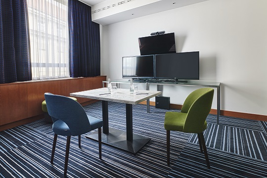 Located in Radisson Blu Hotel Krakow - in the very centre of the city – self-sufficient conference room for hybrid and online meetings provides special equipment provides modern conferencing technology, reliable high-speed internet connection. Guests can use here high-quality display or projector on request, portable loudspeakers, wireless presentation clicker, chargers, adapters and more. Due to the partnership with Zoom, the leader in modern video communication, we provide to our clients a professional service and a great experience. Guests who would like to work from the hotel can use our quiet and comfortable hybrid guest room. For all guests and meeting participants Radisson Blu hotel Krakow offers food and drinks from conference menu – prepared according to the highest safety procedures that are included in the RHG Safety Protocol. These are the new cleaning and disinfection procedures, increased attention to safety at hotel - 20-step protocol for hotel and a 10-step protocol for Meeting and Events.