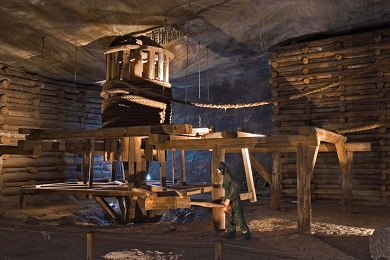Marked out at the 1st, 2nd and 3rd level of the mine through excavations of particular value in terms of history and geology, the sightseeing route offers a journey in time. Subsequent passages and chambers depict the ways in which salt was excavated in the course of centuries. They include, for example, the region of the oldest shaft in which rock salt excavation started in the middle of the 13th century. The participants learn about the various ways of securing the mine.