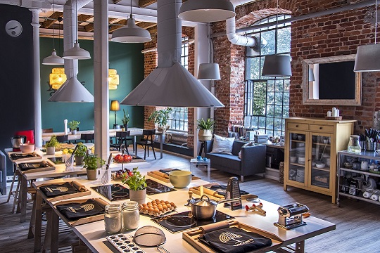 Baccaro is an intimate culinary studio with a homely feel. 75 m2 of creative space in the heart of the city – OFF Piotrkowska Center. The moment you cross the door, you can feel the passion and enthusiasm which are contagious for everyone who come in. Apart from the cozy atmosphere, guests can enjoy the cooking area, comfortable dining room, and a chill out corner where they can sit over a cup of good coffee or wine. There are all the things you need for a cookout with friends: induction cooktops, ovens, food mixers, blenders, and other gadgets and appliances. The interior design and its nature open up lots of possibilities. You can organize a private event here and meet your closest relatives at family celebrations. The studio is also a perfect place to work with a projector or flipchart and it has a Wi-Fi access. It’s also a place to meet your colleagues outside work at an integrational event combined with a cookout. Cooking enthusiasts can take part in periodic culinary workshops. The plan of every meetings is tailored to the needs of the customers.
