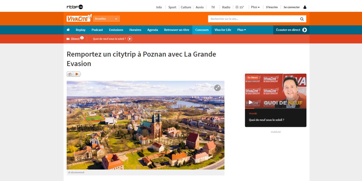 Poznań i Wielkopolska były tematem audycji „La Grande Evasion” w belgijskim radiu VivaCité. Autorzy najważniejszego programu turystycznego w Belgii prezentowali te polskie kierunki jako idealne destynacje na „roadtrip” lub „citytrip”.