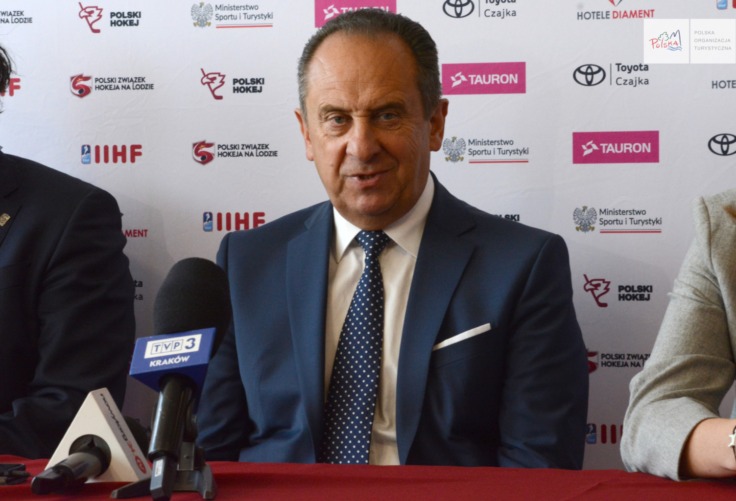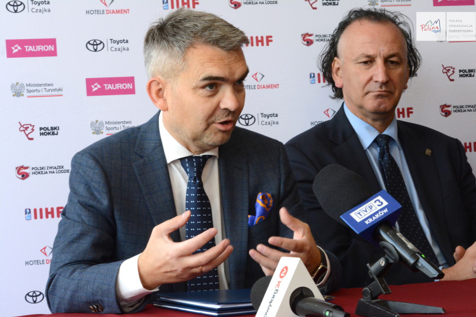 – Promowanie turystyczne Polski poprzez zawodników i reprezentacje hokeja na lodzie to ważny element dalszego budowania popularności tej dyscypliny. Stwarza to dodatkowe możliwości wsparcia hokeja na lodzie przez następne lata, co w połączeniu z sukcesami sportowymi, działaniami środowiska i PZHL pozwoli hokejowi na lodzie na stałe pozostać w gronie ulubionych dyscyplin Polaków – mówił podczas konferencji w Nowym Targu Andrzej Gut-Mostowy, sekretarz stanu w Ministerstwie Sportu i Turystyki.