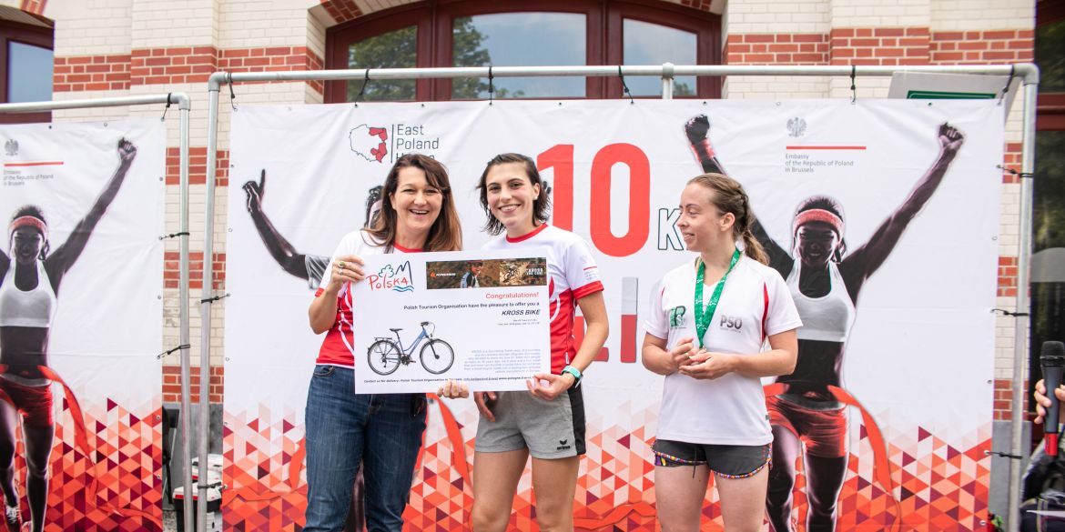 Zwycięzcy w obydwu kategoriach otrzymali wspaniałe nagrody promujące Polskę. Weekend w Grand Hotel w Kielcach ufundowany przez Województwo Świętokrzyskie trafił do najszybszego mężczyzny, a wysokiej klasy rower polskiej produkcji ufundowany przez Polską Organizację Turystyczną otrzymała najszybsza kobieta na mecie. Zwycięzcy otrzymali także wysokiej klasy zegarki sportowe ufundowane przez Dom Polski Wschodniej oraz vouchery na zabiegi w gabinecie fizjoterapii Shape Care. W ramach zawodów Polish Run przyznano też nagrody specjalne dla najstarszego uczestnika i najstarszej uczestniczki, którzy otrzymali zegarki ufundowane przez Wydział Konsularny Ambasady RP w Królestwie Belgii.