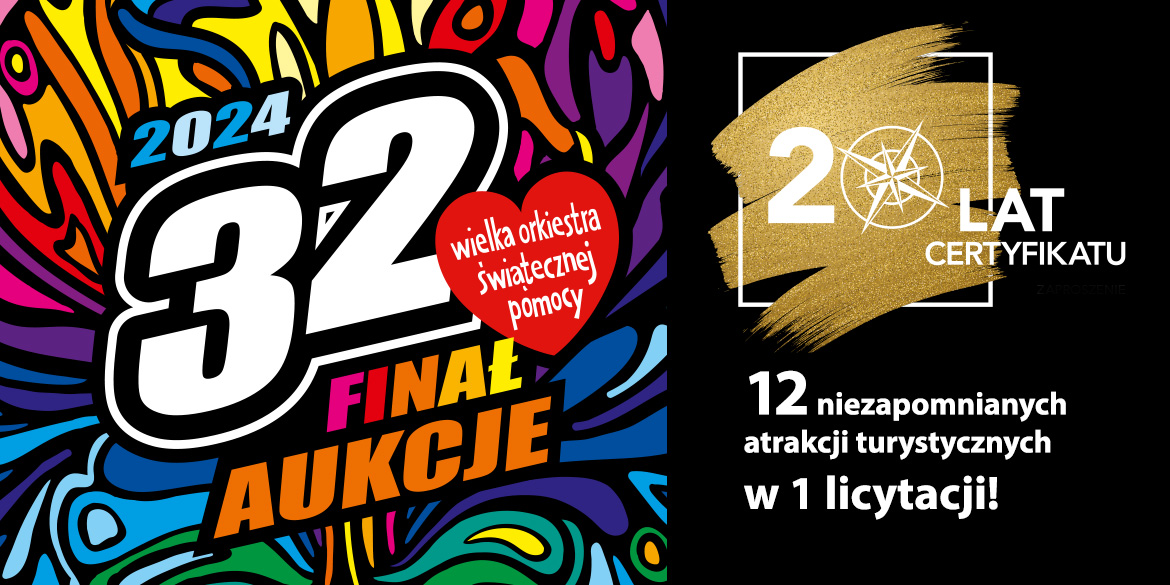 W ramach aukcji charytatywnej możesz wylicytować bilety wstępu wraz z noclegiem w certyfikowanych atrakcjach turystycznych Polski. Certyfikaty Polskiej Organizacji Turystycznej stanowią rekomendację i gwarancję usług na najwyższym poziomie. Od ponad 20 lat Polska Organizacja Turystyczna wyróżnia najciekawsze atrakcje turystyczne w Polsce przyznając im Certyfikaty jako znak jakości, kreatywności i profesjonalizmu.