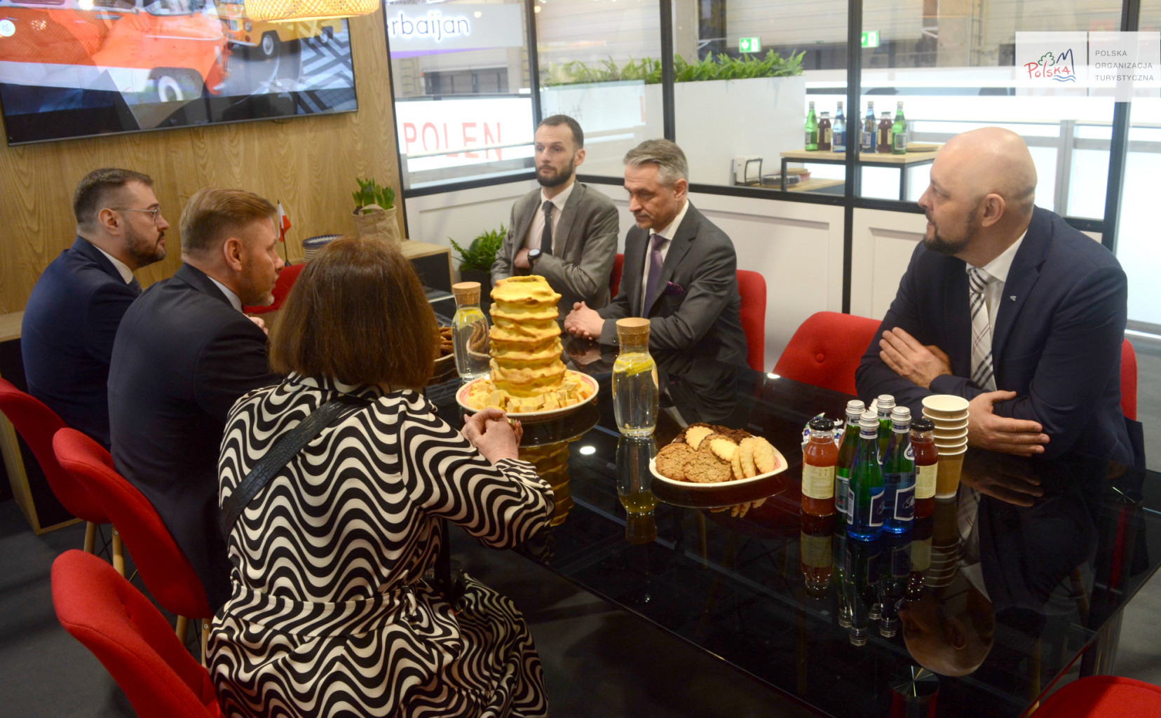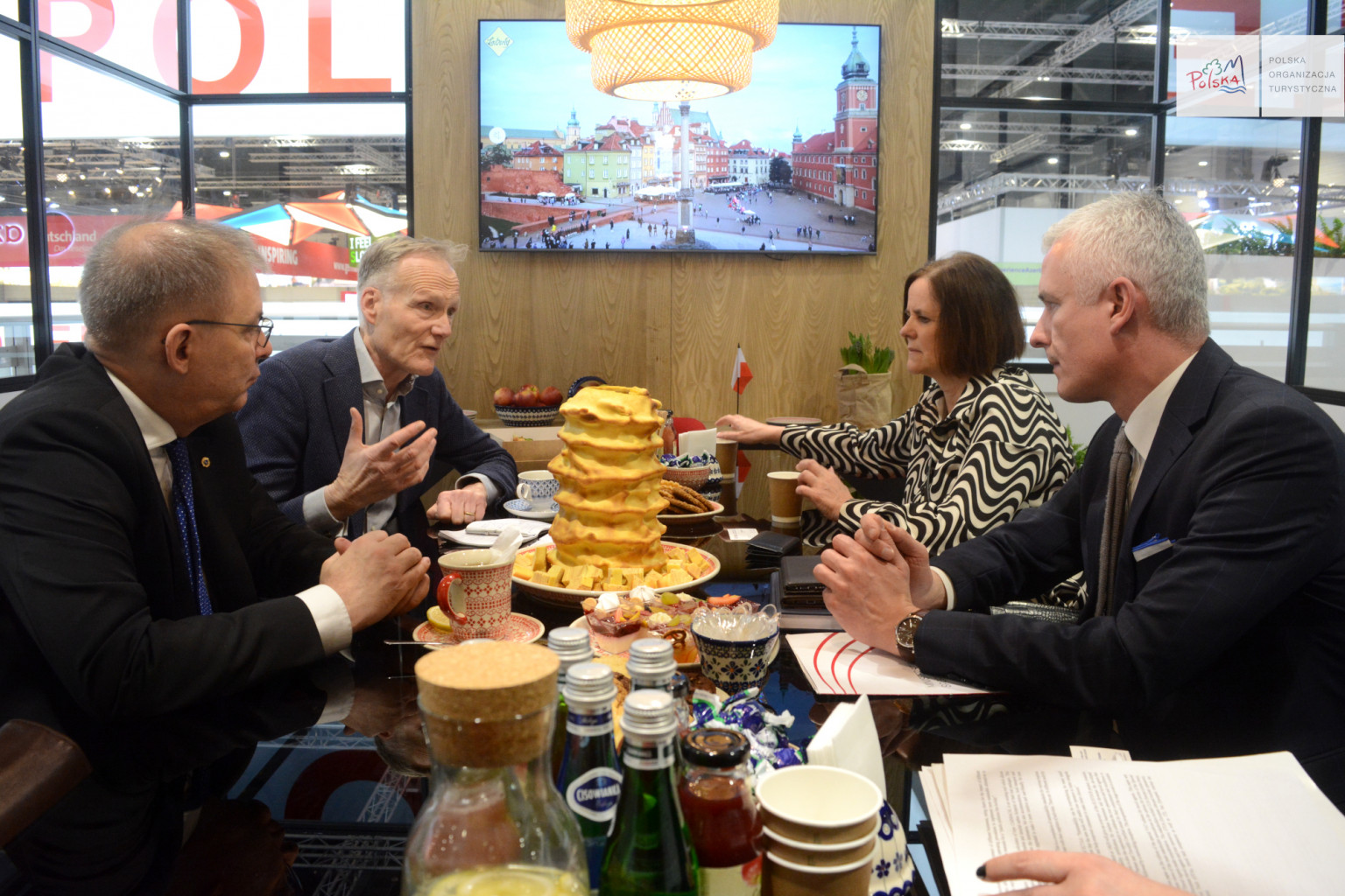 Dwupoziomowe stoisko Polski było również miejscem szeregu spotkań Prezesa POT i dyrektorów departamentów, w tym z Prezesem RDA Internationaler Bustouristik Verband Benediktem Esserem, Prezesem Europejskiej Organizacji Związków Biur Podróży Unii Europejskiej Frankiem Oostdamem oraz Członkiem Zarządu ECTAA i Prezesem Polskiej Izby Turystyki Pawłem Niewiadomskim, a także dyrektorem departamentu Ministerstwa Turystyki Bułgarii Georgijem Alipievem. Intensywny pierwszy dzień zwieńczyła dyskusja z radnymi z Małopolski: Andrzejem Wójcikiem, Wojciechem Skruchem, Prezesem Małopolskiej Organizacji Turystycznej Grzegorzem Biedroniem i Zastępcą Dyrektora Wydziału ds. Turystyki Urzędu Miasta Krakowa Katarzyną Gądek na temat współpracy, wspólnych projektów, a przede wszystkim promocji Polski i regionu w świetle nadchodzących Igrzysk Europejskich Kraków-Małopolska 2023.
