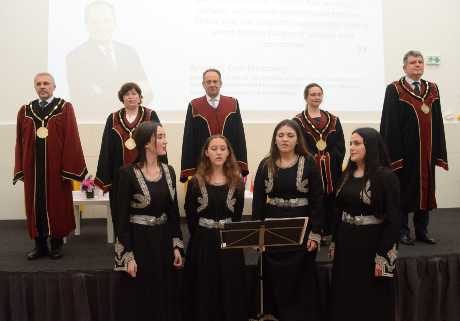 - Pragnę wyrazić głęboką wdzięczność władzom uniwersyteckim i kolegom akademickim za to wielkie wyróżnienie. Jestem zaszczycony, serdecznie dziękuję. Jest to wyraz uznania nie tylko mojej osoby, ale całego zespołu, który wspiera współpracę polsko-bułgarską na licznych polach turystyki i nauki. Współpraca i dialog ze wszystkimi środowiskami związanymi z szeroko rozumianą turystyką jest dla mnie podstawą w codziennej pracy. Jestem otwarty na dzielenie się dobrymi praktykami, sprawdzonymi rozwiązaniami na rzecz rozwoju turystyki - powiedział wiceminister sportu i turystyki Andrzej Gut-Mostowy podczas odbierania tytułu.
