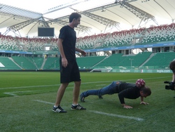 Jednak największym zaskoczeniem okazało się zwiedzanie stadionu stołecznego klubu piłkarskiego połączone z pokazem freestyle football przez Krzysztofa Golonkę - Mistrza Świata w Trikach Piłkarskich 2011! Każdy z uczestników mógł spróbować swoich umiejętności piłkarskich pod okiem mistrza, a na koniec wręczone zostały oficjalne piłki UEFA na Mistrzostwa Europy 2012!