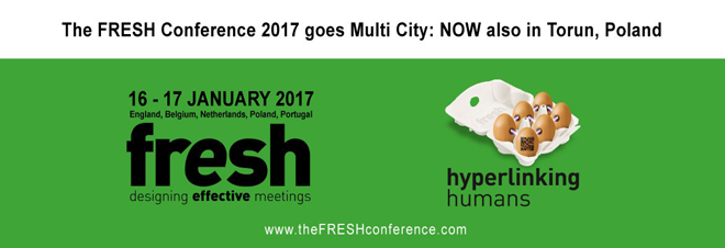 Międzynarodowa Konferencja FRESH jest dedykowana wszystkim którzy zainteresowani są tematem projektowania spotkań i eventów. Edycja FRESH 2017 przynosi jedną konferencję do pięciu Europejskich miast równocześnie... także do Polski! Poznaj 7 Powodów dla których Konferencja FRESH to unikatowe doświadczenie.
