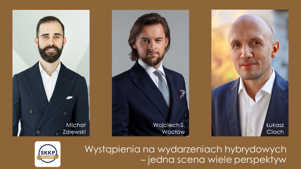 Szkolenie podzielone jest na trzy moduły, w którym kompleksowo podjęto temat „wystąpień podczas wydarzeń hybrydowych”. Dzisiaj wydarzenia hybrydowe i wirtualne stały się naszą codziennością, ale czy jesteśmy do nich odpowiednio przygotowani? Czy wiemy jak poruszać się w wirtualnym świecie, który wymaga od nas profesjonalnego przygotowania do prezentacji i wystąpień przed kamerą? Czy umiemy walczyć z tremą? SKKP zaprosiło do projektu trzech ekspertów, którzy poprowadzili wydarzenia dla setek tysięcy osób i którzy podzielą się z nami swoją wiedzą i doświadczeniem, odsłaniając przed nami kulisy konferencji hybrydowych: od rad na temat przygotowania wystąpienia (Michał Zalewski), przez podpowiedzi dotyczące zachowania przed kamerą czyli etykiety (Wojciech S. Wocław) aż po wskazówki dotyczące przygotowania międzynarodowych wydarzeń (Łukasz Cioch).