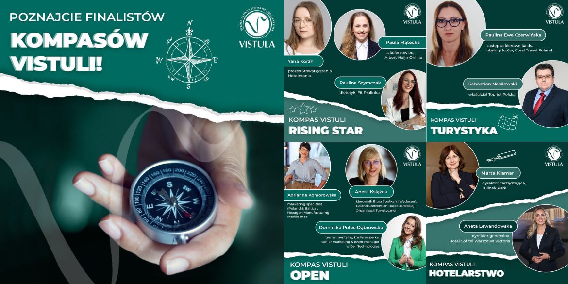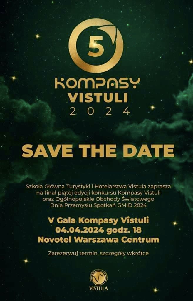Szkoła Główna Turystyki i Hotelarstwa Vistula w Warszawie ogłasiła piątą edycję prestiżowego konkursu „Kompasy Vistuli”, który honoruje wybitnych absolwentów uczelni. Celem tej inicjatywy jest wyróżnienie jednostek, które osiągnęły znaczące sukcesy zawodowe w obszarze szeroko pojętej gościnności, obejmującej turystykę, hotelarstwo, sektor HORECA, branżę eventową oraz przemysł rekreacji. W konkursie nagradzane są dokonania zarówno polskich, jak i zagranicznych absolwentów SGTiH a na uhonorowanie mają szansę osoby, które odniosły sukces na polu zawodowym związanym z szeroko pojętą gościnnością, mają zapał i potencjał, wyróżnia je pełna zaangażowania postawa. Mogą pokazywać innym drogę i być przykładem. Szkoła Główna Turystyki i Hotelarstwa Vistula docenia ludzi, którzy widzą więcej, są spostrzegawczy, kreatywni, mają wizję.