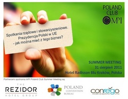 31 sierpnia w Krakowie, w hotelu Radisson Blu odbędzie się Summer Meeting 2011 – spotkanie członków MPI Poland Club. Głównym tematem dyskusji będzie organizacja imprez podczas Prezydencji Polski w Unii Europejskiej.
