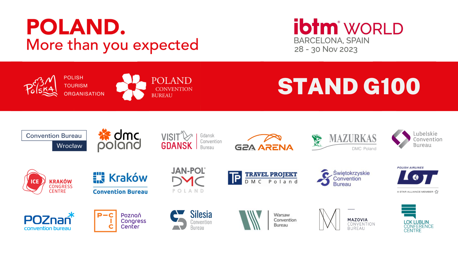 Polskę w tym roku reprezentowali przedstawiciele convention bureaux, Profesjonalnych Organizatorów Kongresów, firm organizujących podróże motywacyjne, DMC, Polskie Linie Lotnicze LOT oraz obiekty kongresowe i targowe. Lista oficjalnych uczestników IBTM World 2023 na Polskim Stoisku Narodowym zawiera następujące podmioty:
