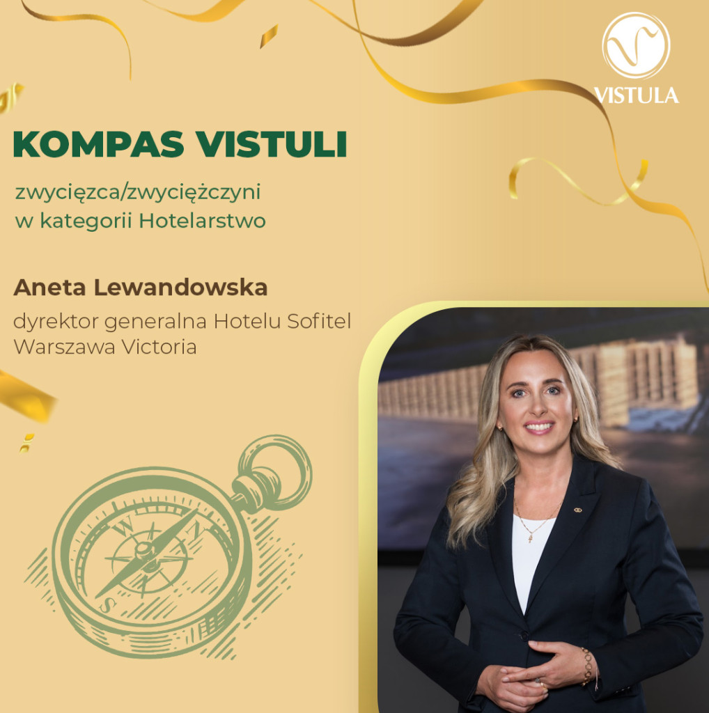 W kategorii Hotelarstwo Kompas Vistuli otrzymała Anna Lewandowska - dyrektor generalna, Hotel Sofiltel Warszawa Victoria (druga nominacja dla Marta Klamar - dyrektor zarządzającej Julinek Park).