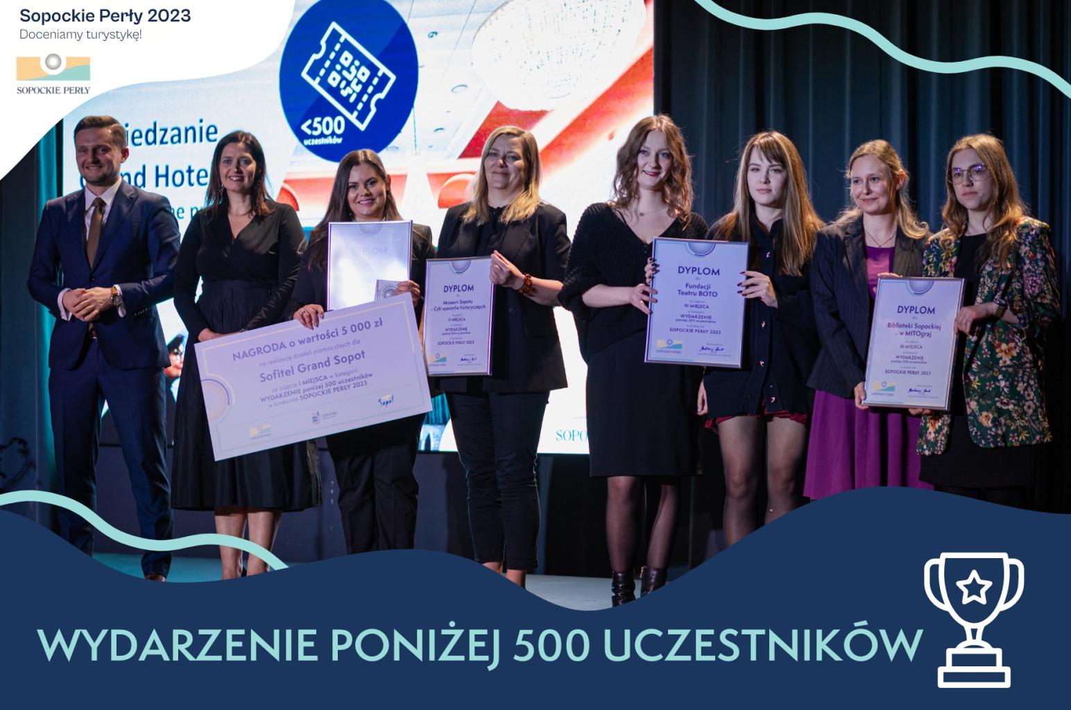W kategorii Najlepsze Wydarzenia, wyróżniono te, które miały na celu przyciągnięcie zarówno mieszkańców, jak i turystów, będąc jednocześnie niepowtarzalnymi i wyróżniającymi się. W kategorii wydarzeń poniżej 500 osób zwyciężyło Zwiedzanie Grand Hotelu - Sofitel Grand Sopot, przed Fundacją Teatru BOTO / Cyklem spacerów historycznych - Muzeum Sopotu oraz Projektem "w MITOgraj" - Biblioteka Sopocka.