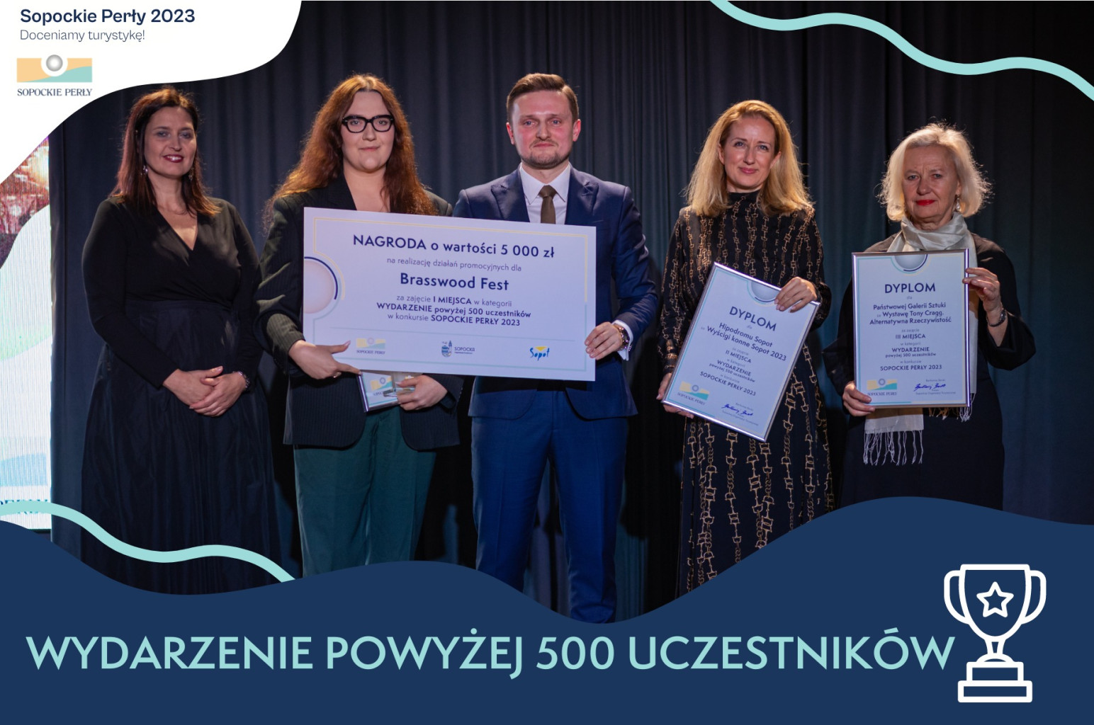 Natomiast w kategorii wydarzeń powyżej 500 osób triumfowali Brasswood Fest, Wyścigi Konne 2023 - Hipodrom Sopot oraz Wystawa Tony Cragg Alternatywna Rzeczywistość - Państwowa Galeria Sztuki w Sopocie.