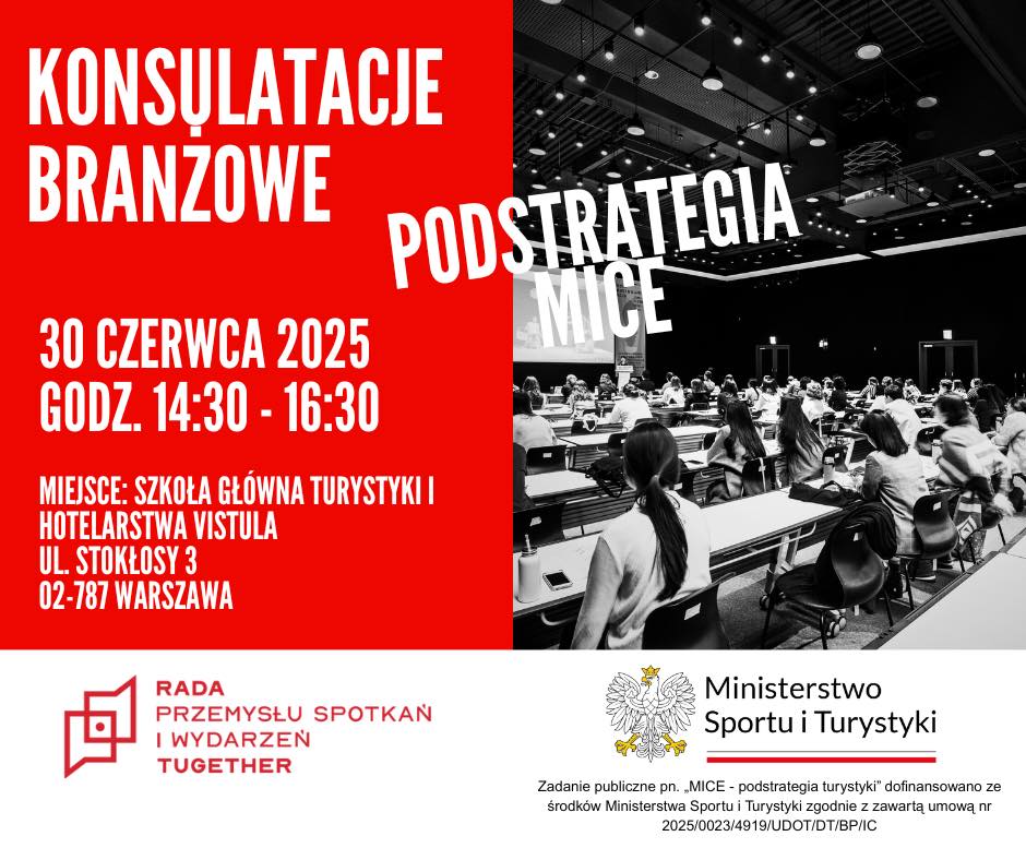 30 czerwca 2025 roku w Szkole Głównej Turystyki i Hotelarstwa Vistula w Warszawie odbyły się pierwsze konsultacje i warsztaty dotyczące przygotowywanej podstrategii MICE - dokumentu strategicznego, którego celem jest wyznaczenie kierunków rozwoju sektora turystyki biznesowej w Polsce. Spotkanie zostało zorganizowane przez RPSiW Tugether, a w wydarzeniu uczestniczyli również przedstawiciele Polskiej Organizacji Turystycznej - Poland Convention Bureau.