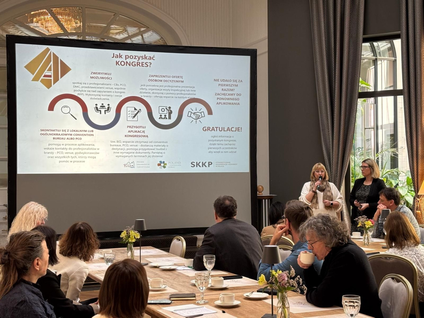 - przegląd programów wsparcia dla Ambasadorów Kongresów, omówiony przez Anetę Książek ( Polska Organizacja Turystyczna - Poland Convention Bureau) oraz Agnieszkę Szymerowską (SKKP – Stowarzyszenie Konferencje i Kongresy w Polsce),