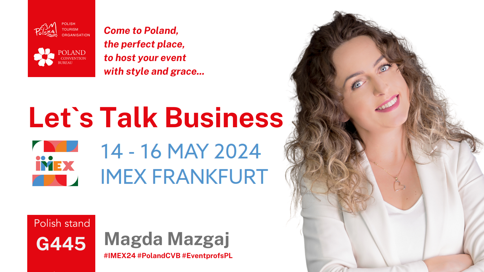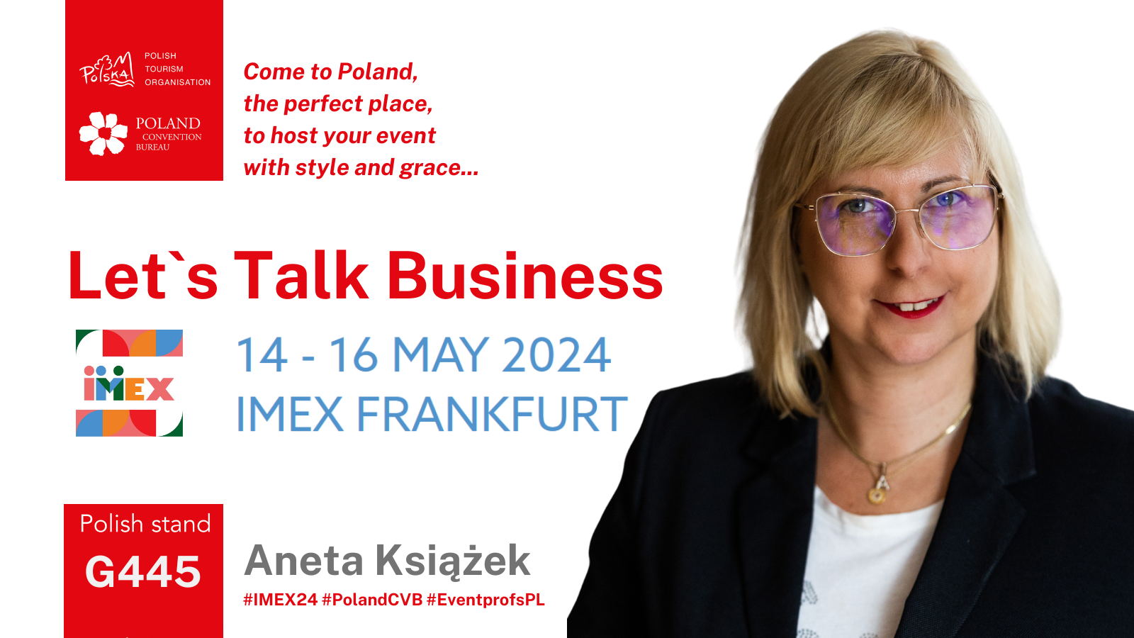 Biuro Spotkań i Wydarzeń Polskiej Organizacji Turystycznej po raz kolejny organizuje polskie stoisko narodowe na targach IMEX we Frankfurcie nad Menem. W tym roku targi odbędą się od 14 do 16 maja. W roku 2024 na stoisku nr G445 w hali 8 Messe Frankfurt oferty MICE zaprezentuje 17 polskich wystawców.
