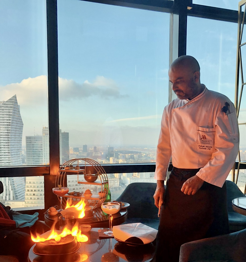 Słodka część menu w Panorama Sky Bar jest odpowiedzialnością samego mistrza cukiernictwa, Cezarego Mścichowskiego, głównego cukiernika hotelu. Podczas wizyty doznania smakowe i widoki dopełniały niezwykłe historie opowiadane przez dyrektora hotelu.