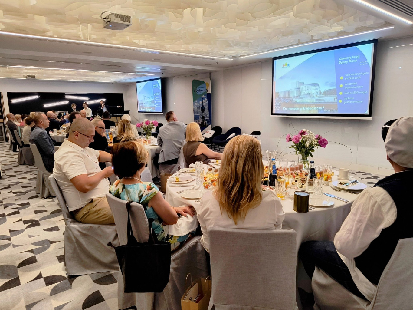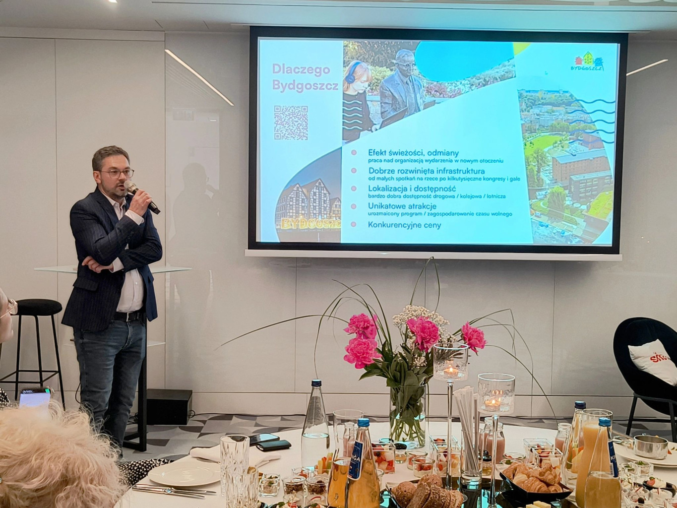 Spotkanie w Warszawie stanowiło doskonałą okazję do zaprezentowania potencjału Bydgoszczy jako miejsca, które łączy funkcjonalność z wyjątkowym klimatem – idealnego dla organizatorów poszukujących świeżych i nietuzinkowych lokalizacji na swoje wydarzenia. Partnerami merytorycznymi byli SITE Poland oraz THINK MICE.